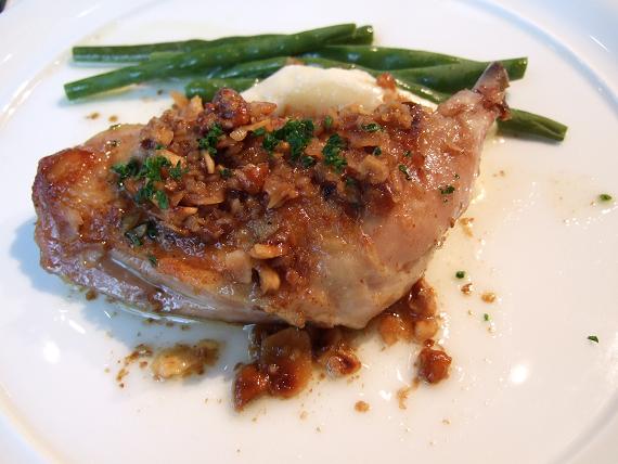 ↓メインは、地鶏モモ肉のコンフィ リヨン風マカロニグラタンを添えて。