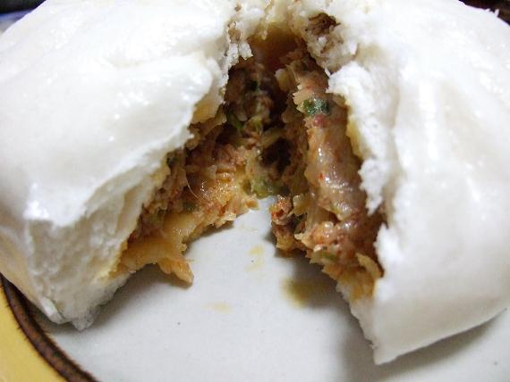 今日食べたのはキムチ肉まん。↓