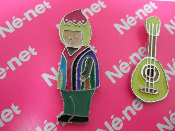 たべっ子どうぶつの形をしたシルバーのネックレスとピンバッジ。